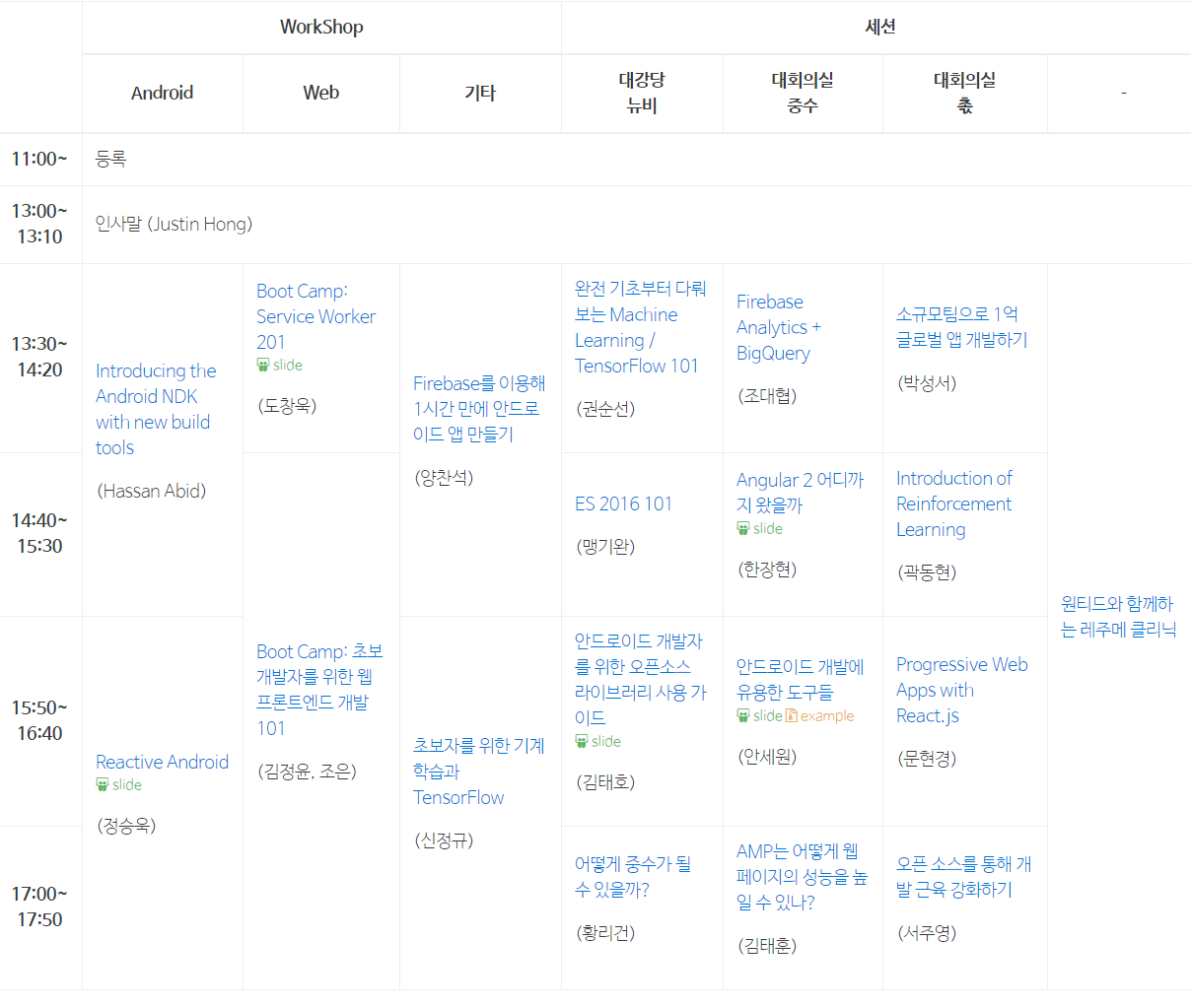 발표해주신 개발자분들의 발표자료를 삽입하고 현장에서 중요하다고 생각했던